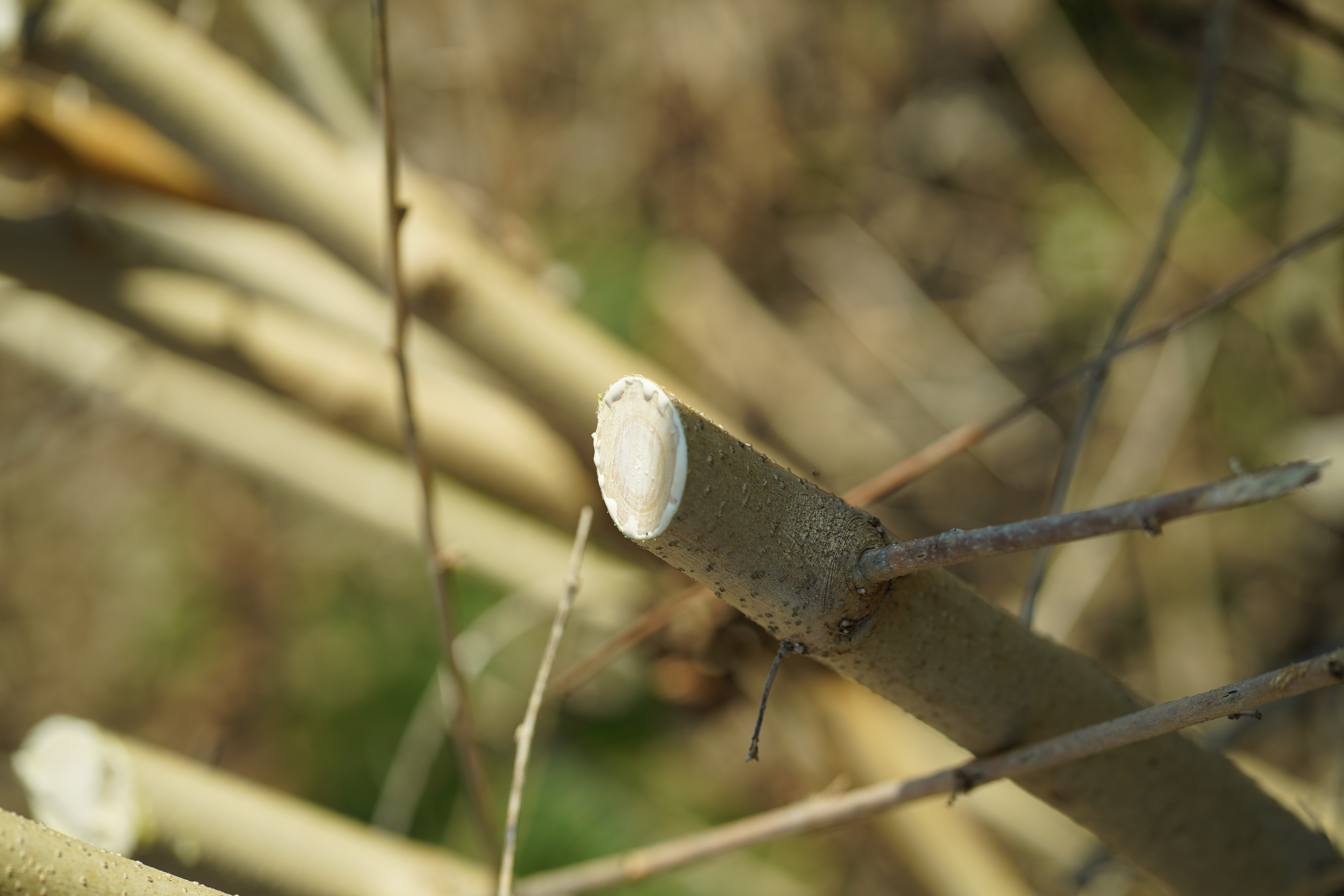 桑の木の断面図。樹液が出てきます。この樹液は洋服につくと取れにくいので注意。